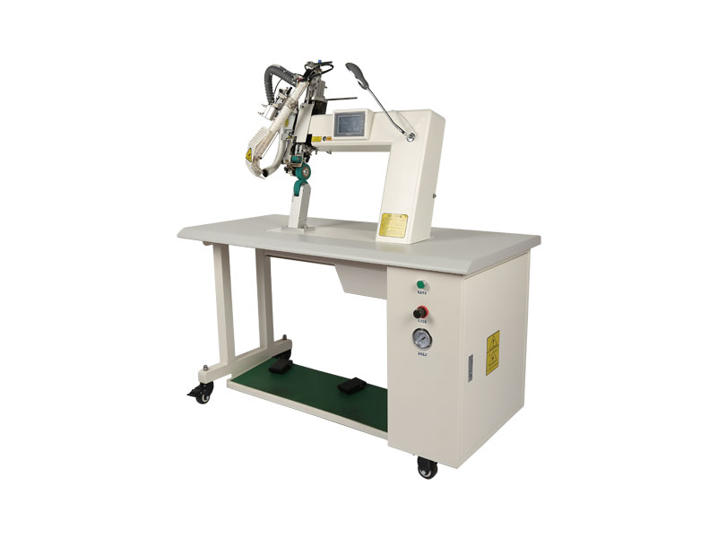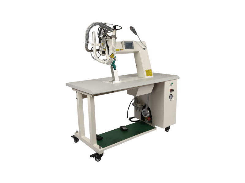 整機(jī)設(shè)計(jì): 無(wú)臺(tái)板、下柱空間超大設(shè)計(jì)、可調(diào)下柱角度、適宜加工大型的帳蓬,橡皮艇、氣球、無(wú)縫產(chǎn)品的熱合。